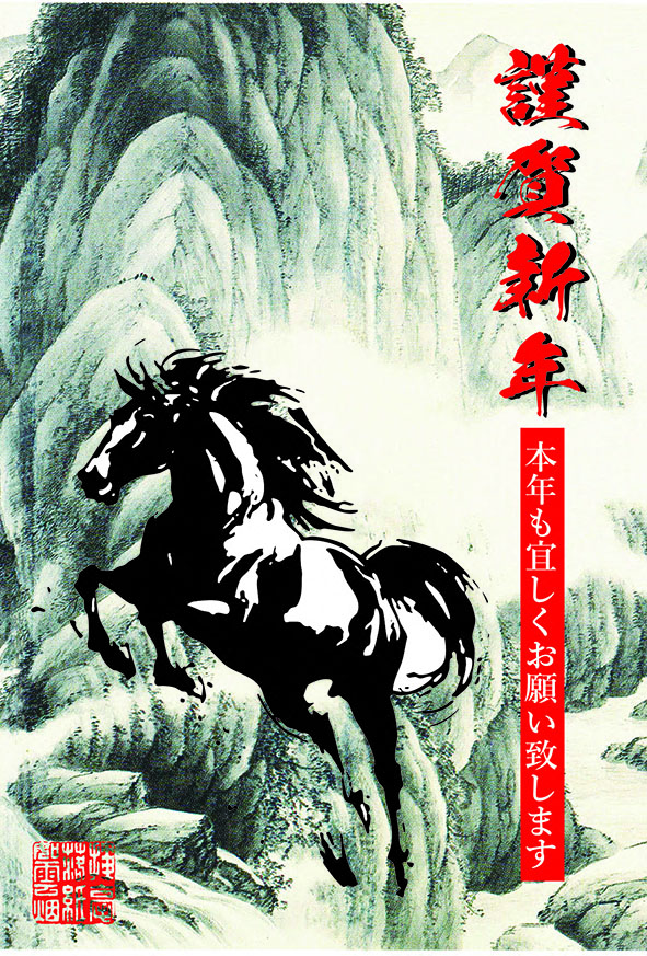 『丙午』//60年に1度巡る新しい挑戦と発展に適した活気ある年と言われています。又『前進』が開運を開く一方『整理』と『冷静さ』を求められ、本音と建前『本質』(嘘や偽りが炙り出されやすい)を見極める節目の年とも云われています。このことから縁起を担ぎ(皆様の福を願い)駆け抜ける『目標に向かって迷わず進んでいく』『状況や試練を諦めずに乗り越えて進む』馬と下記の漢詩にて.2026年の年賀ハガキを制作いたしました。